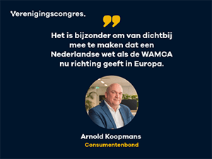 Juridisch en financieel gaat de vereniging niet over een nacht ijs. Arnold: “Er waren al eerder collectieve claims met consumenten, denk aan de claims rond de woekerpolissen. Maar intussen hebben we de WAMCA, Wet afwikkeling massaschade in collectieve actie. Deze wet is tot stand gekomen door samenwerking in de polder en geeft een stevige juridische basis. Zowel consumentenorganisaties als brancheorganisaties als de overheid wilden toe naar een regeling die de afwikkeling van massaclaims efficiënter en rechtvaardiger zou maken. Bijzonder is dat deze Nederlandse wet eigenlijk is gekopieerd voor het maken van Europese regels. Dus wat wij doen draagt bij aan het ontwikkelen en vernieuwen van toezicht en handhaving in Nederland en in Europa.”