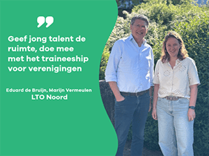 “Als vereniging moet je blijven vernieuwen,” stelt Marijn Vermeulen, manager Verenigingszaken bij LTO Noord. “We willen toonaangevend blijven in belangenbehartiging voor de agrarische sector, en dat lukt alleen als je ook jong talent de ruimte geeft.” Die overtuiging leidde ertoe dat LTO Noord zich aansloot bij het Traineeship voor Verenigingen. Hét initiatief om jonge professionals kennis te laten maken met het werken binnen de wereld van verenigingen.