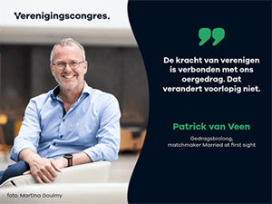 Gedragsbioloog Patrick van Veen kennen we als matchmaker bij Married at first sight, als keynote-spreker, als trainer of als onderzoeker. Wat hij doet is wetenschap vertalen in kennis die we kunnen inzetten voor maatschappelijke thema’s. Bijvoorbeeld voor de vraag: wat zoeken mensen in een vereniging?